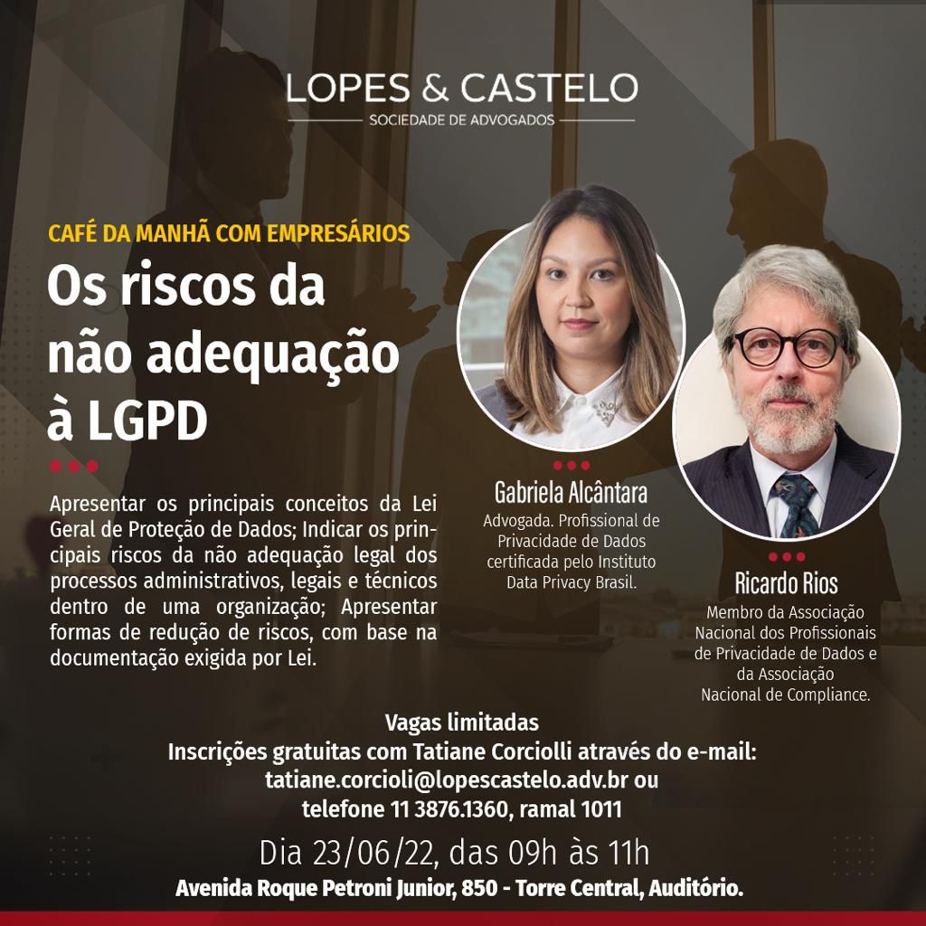 23/06/2022 No dia 23 de junho, das 9h às 11h, a Lopes & Castelo realizará o evento para apresentar os principais conceitos da LGPD, seus